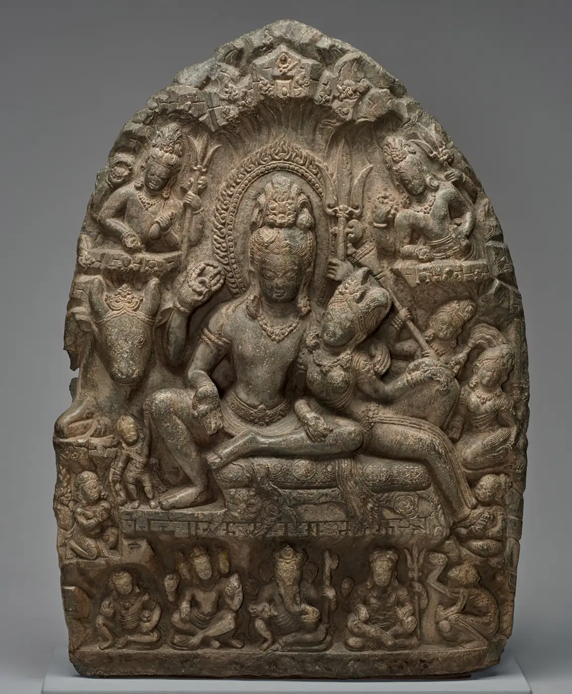 Umā-Maheśvaramūrti, Nepal. 900s. Stone. Previously held by The Denver Art Museum, the sculpture has been returned to the people of Nepal in 2021